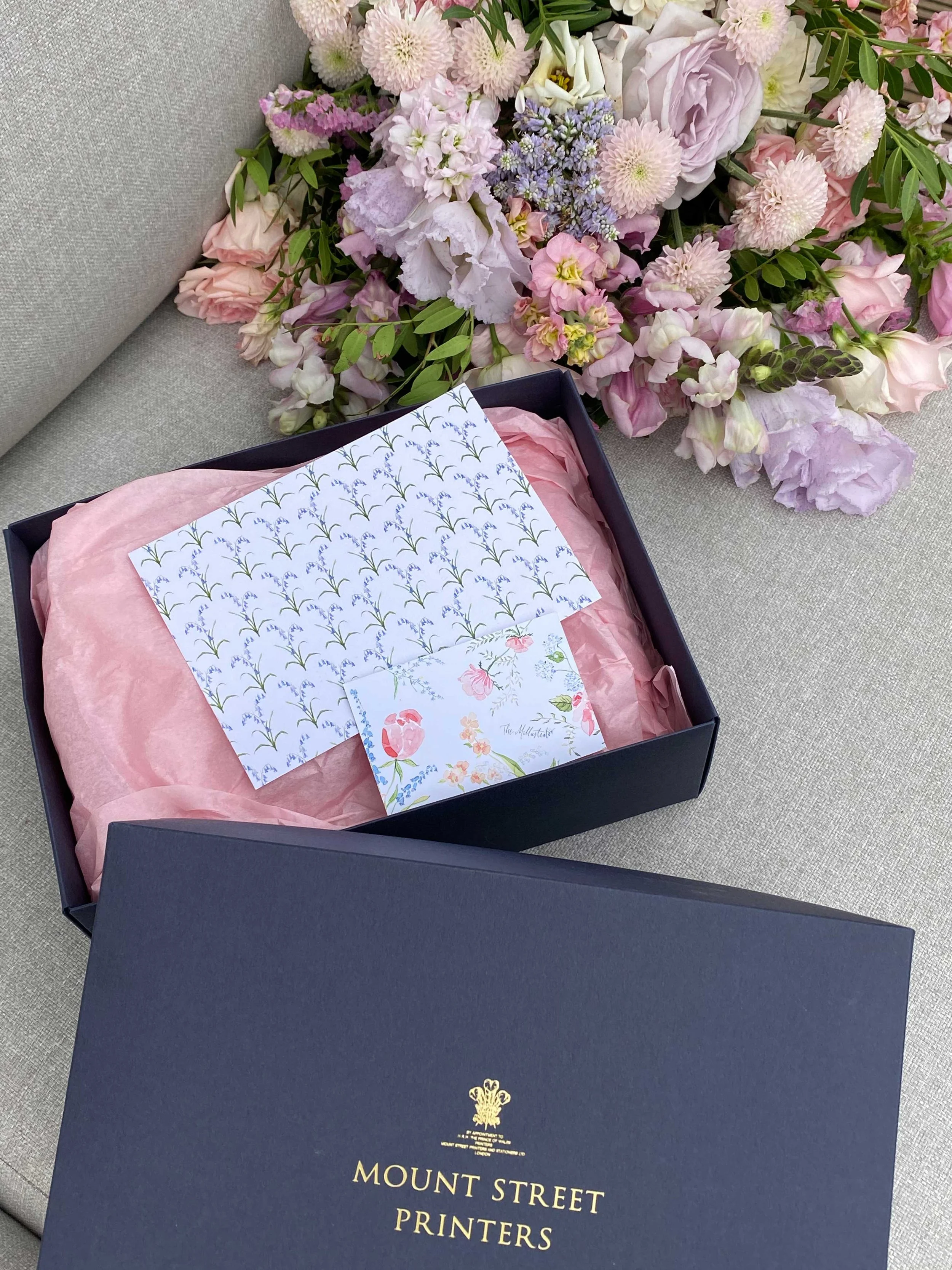 As a recommended illustrator of Mount Street Printers – a family-owned luxury print studio in the heart of Mayfair – I can guide you through the possibilities for print. Their team truly are the best in the business, and as a selected partner we can choose from a myriad of hand finished processes, a treasure trove of card and a thoughtful range of colours to give that final luxury touch to your ‘Millustrations’.